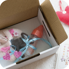 ぬいぐるみと哺乳瓶もいっしょに、幸せづくしで贈ります。